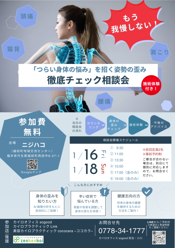 「どこに行っても良くならない…」そんな思いを抱えている方へ。まずはAIによる姿勢分析で、今の体の状態を“見える化”します。さらにカウンセリングと丁寧な検査で、痛みや不調の本当の原因をわかりやすくご説明。